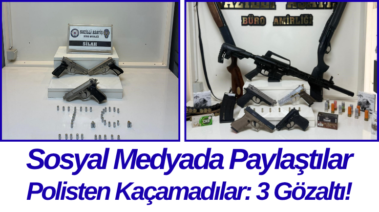 Aydın’ın Nazilli ilçesinde sosyal medya üzerinden silah teşhiri yaptığı belirlenen şahıslara yönelik düzenlenen operasyonda 3 kişi gözaltına alındı. Operasyon kapsamında çok sayıda silah ve mühimmat ele geçirildi.